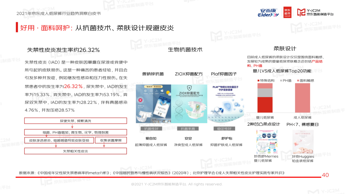 关注失禁性皮炎等健康隐患,从抗菌技术、柔肤设计等层面进行规避。