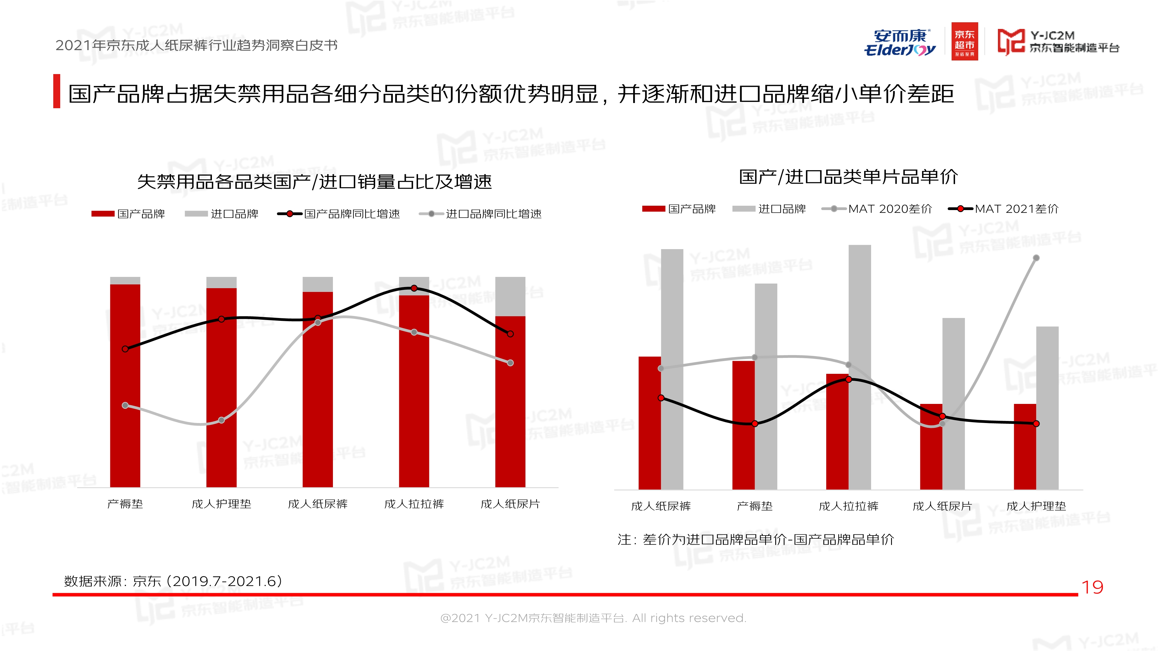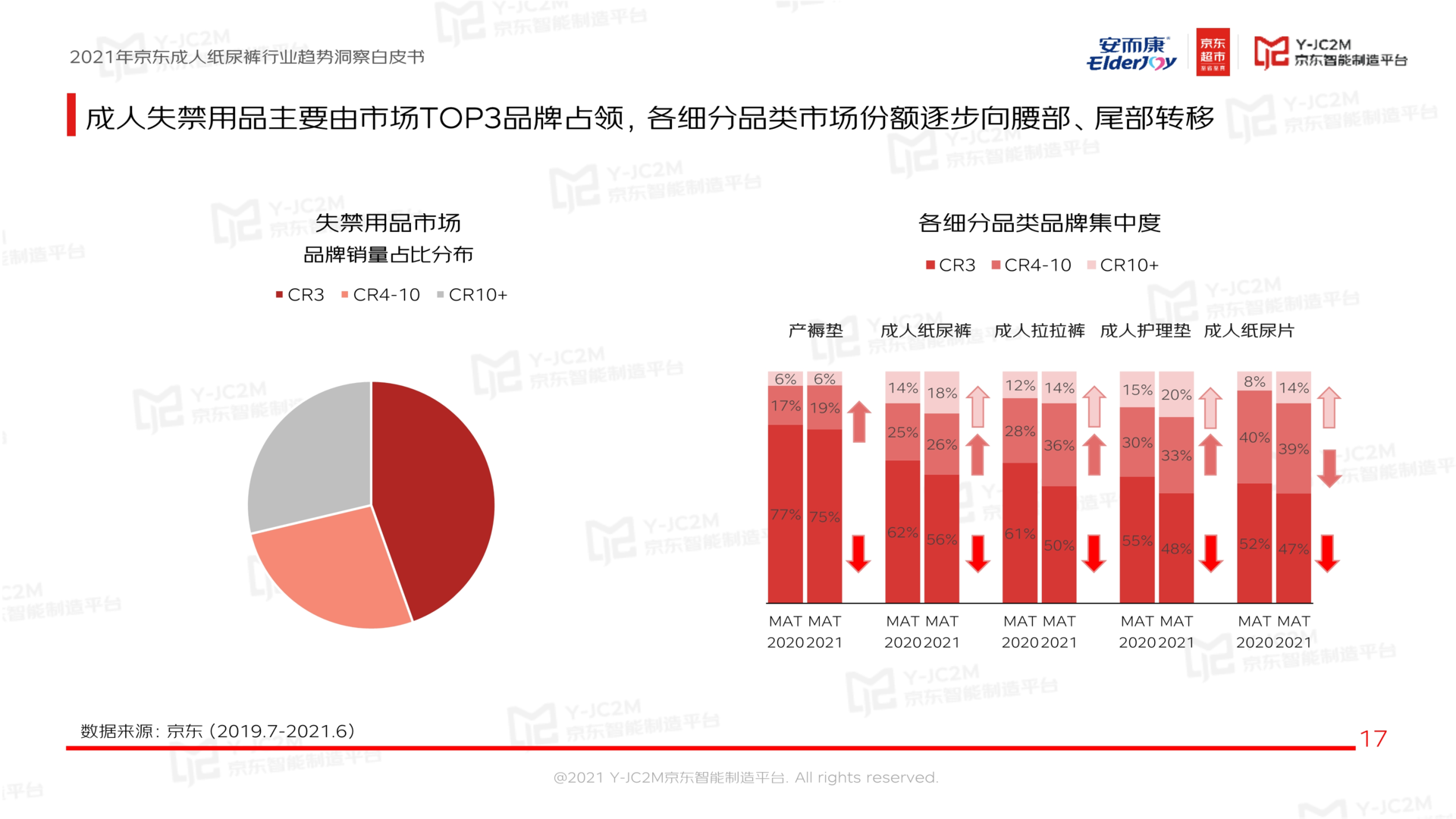 从市场层面的分析,我们不难看出,目前我国成人失禁用品市场潜力巨大,但还处于市场教育的阶段。以成人纸尿裤为例,其存在的意义不仅仅是解决最基本的问题,更是解放老人等相关使用群体的生活状态,所以大多数品牌的口碑建立曲线,正在从功能层面的教育拓展到更高一级的情感层面。同时,大量全新品牌的建立与引入,以及现有品牌跨品类丰富产品线,使得我国成人失禁用品市场呈现出蓬勃发展的态势。